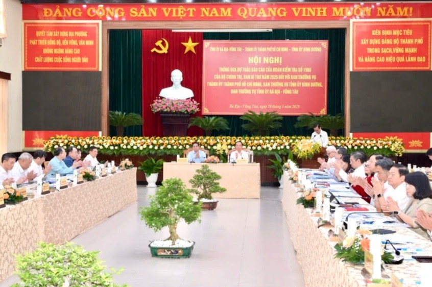 Tại hội nghị, đồng Trần Thị Hiền, Phó Chủ nhiệm Ủy ban Kiểm tra Trung ương, Phó trưởng đoàn kiểm tra đã công bố dự thảo báo cáo của Đoàn kiểm tra số 1908 của Bộ Chính trị, Ban Bí thư năm 2025 đối với Ban Thường vụ Thành ủy TP. Hồ Chí Minh, Ban Thường vụ Tỉnh ủy Bình Dương và Ban Thường vụ Tỉnh ủy Bà Rịa - Vũng Tàu.