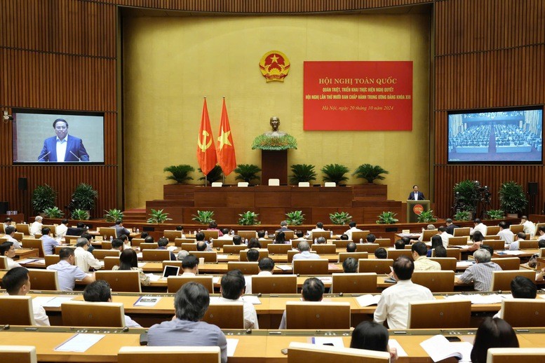 Sáng 20/10, tại Hà Nội, Bộ Chính trị, Ban Bí thư Trung ương Đảng tổ chức Hội nghị toàn quốc quán triệt, triển khai thực hiện Nghị quyết Hội nghị lần thứ mười Ban Chấp hành Trung ương Đảng khóa XIII.