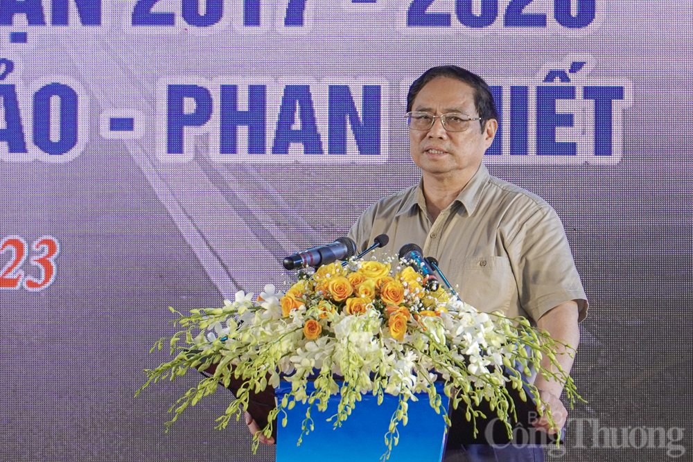 Tại buổi lễ, trong không khí phấn khởi, tự hào, Thủ tướng Phạm Minh Chính chính thức tuyên bố khánh thành các dự án Nha Trang - Cam Lâm và Vĩnh Hảo - Phan Thiết.