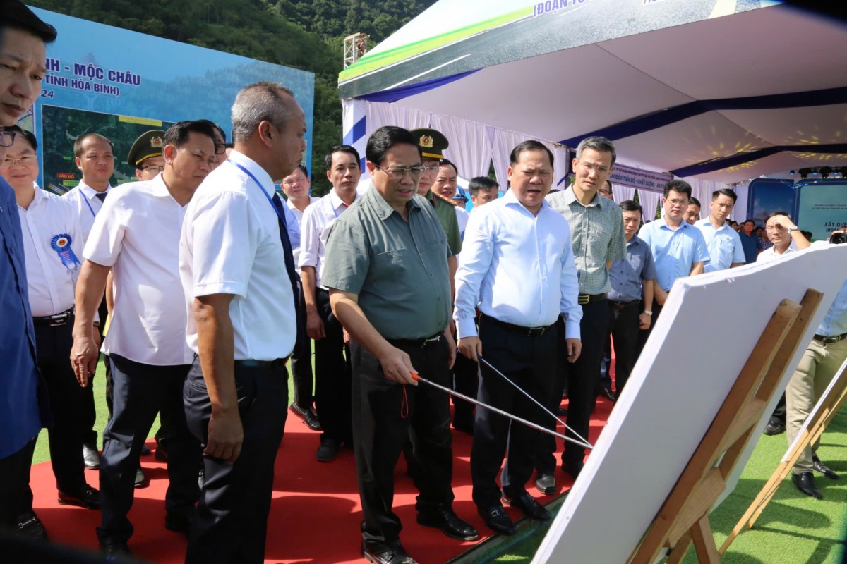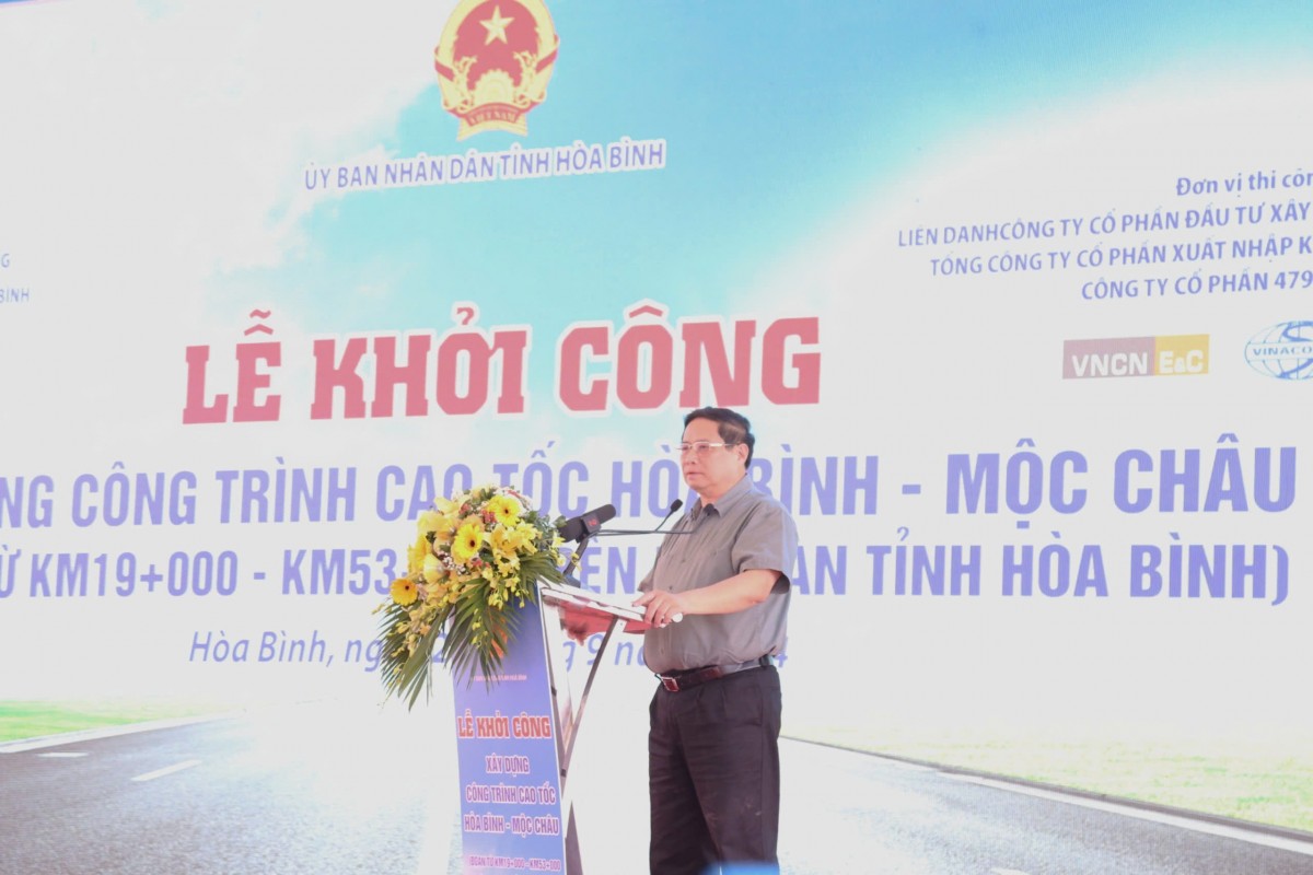 | Thủ tướng Phạm Minh Chính khởi công Dự án cao tốc Hòa Bình – Mộc Châu. Ảnh: VĐ |