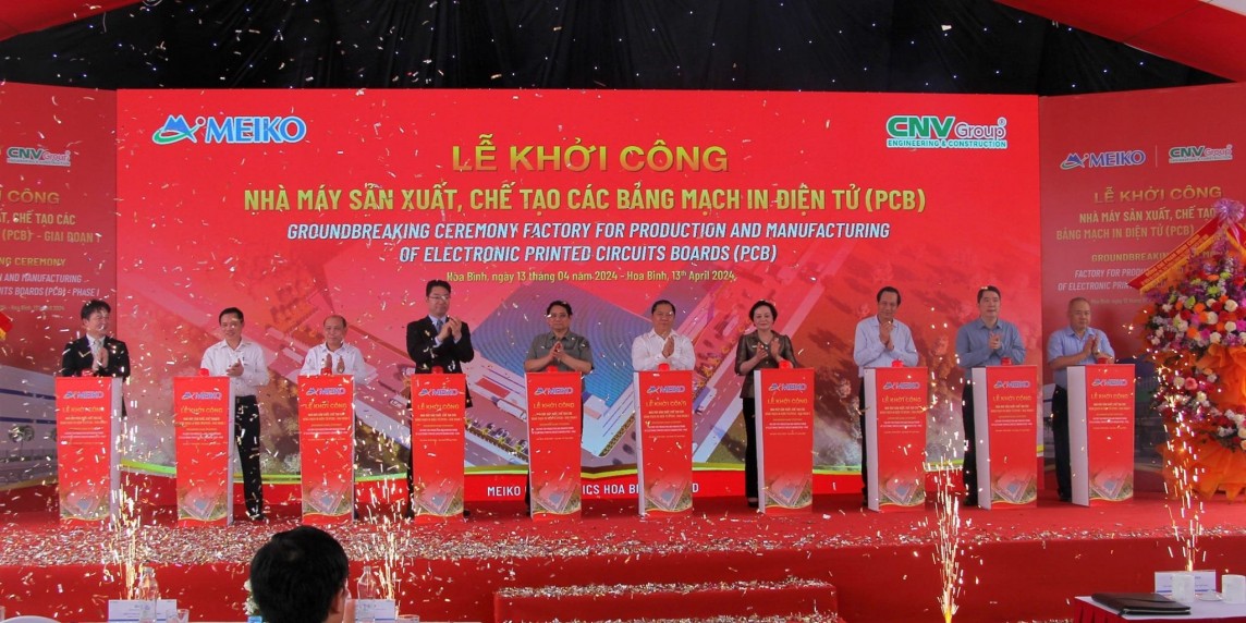 Chiều 13/4, Thủ tướng Chính phủ Phạm Minh Chính đã tới dự và bấm nút khởi công dự án “Nhà máy sản xuất, chế tạo các loại bảng mạch in điện tử” do Tập đoàn Meiko Nhật Bản đầu tư tại Khu công nghiệp Bờ trái Sông Đà, TP. Hòa Bình, tỉnh Hòa Bình.