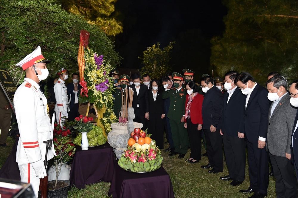 | Chiều ngày 21/12, Thủ tướng Chính phủ Phạm Minh Chính và đoàn công tác dự lễ dâng hương, dâng hoa tưởng niệm Đại tướng Võ Nguyên Giáp tại nơi yên nghỉ của Đại tướng ở khu vực Đảo Yến - Vũng Chùa (Quảng Đông, Quảng Trạch, Quảng Bình) |