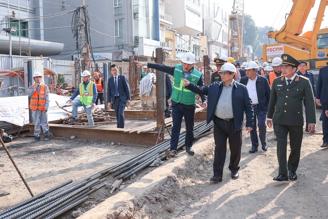 | Thủ tướng Phạm Minh Chính đi kiểm tra hiện trường công tác thi công tuyến đường sắt đô thị số 3 Hà Nội (Nhổn-ga Hà Nội) |