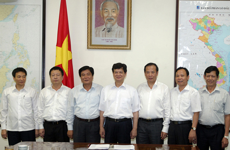 | Thủ tướng Nguyễn Tấn Dũng, Bộ trưởng-Chủ nhiệm VPCP Vũ Đức Đam (hàng đầu bên trái)và các đồng chí lãnh đạo chủ chốt tỉnh Hải Dương. |