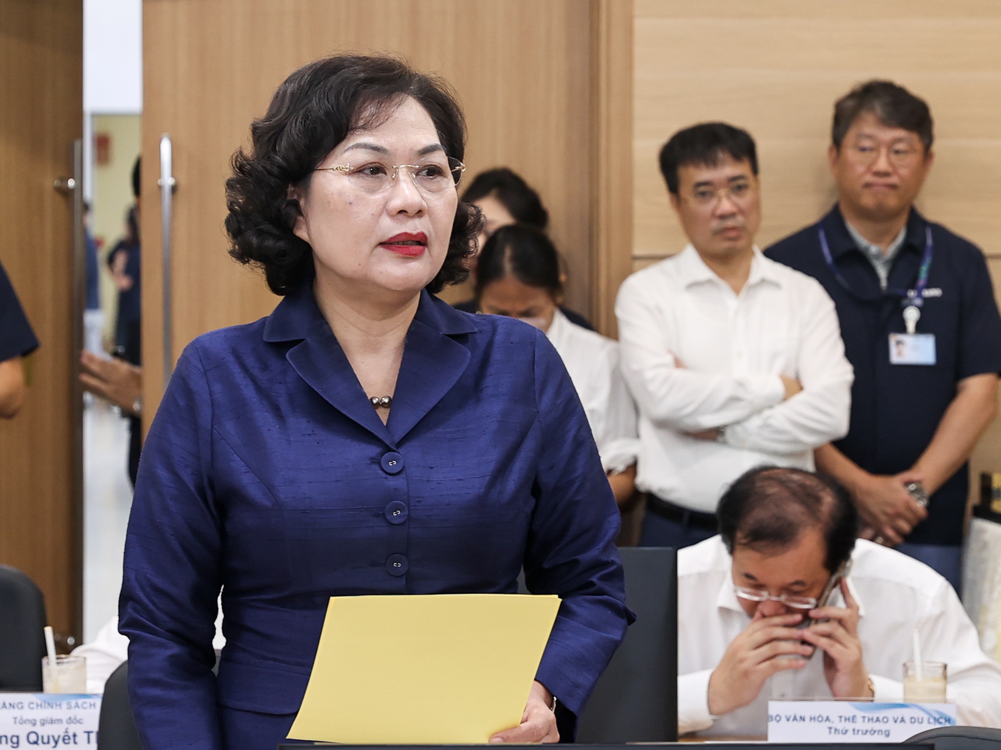 | Thống đốc NHNN Việt Nam Nguyễn Thị Hồng và Bộ trưởng Bộ Kế hoạch và Đầu tư Nguyễn Chí Dũng trả lời các đề xuất, kiến nghị - Ảnh: VGP/Nhật Bắc |