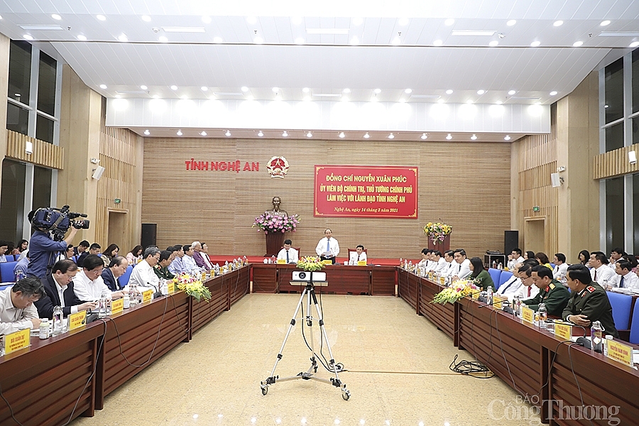 Tại buổi làm việc, Thủ tướng Nguyễn Xuân Phúc điểm lại kết quả Nghệ An đạt được trong thời gian qua như tăng trưởng kinh tế bình quân nhiệm kỳ đạt 7,2%/năm, tốc độ tăng trưởng tổng sản phẩm năm 2020 của tỉnh đạt 4,45%.