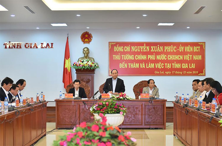 Chiều nay (17/12), tại tỉnh Gia Lai, Thủ tướng Nguyễn Xuân Phúc và đoàn công tác Chính phủ đã làm việc với lãnh đạo chủ chốt tỉnh Gia Lai về tình hình kinh tế - xã hội.