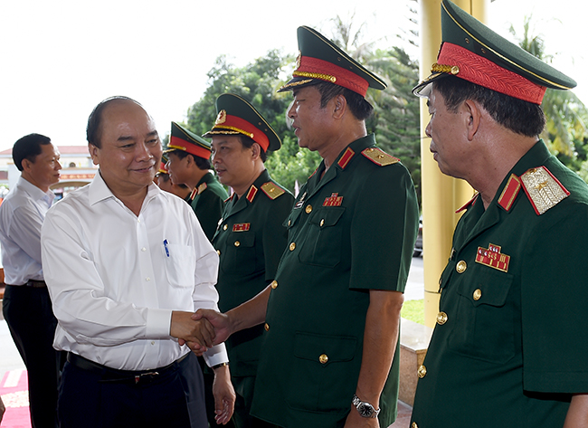 | Thủ tướng Nguyễn Xuân Phúc đề nghị cán bộ, chiến sĩ lực lượng vũ trang Quân khu 4 tăng cường công tác giáo dục chính trị, tư tưởng, nâng cao tinh thần cảnh giác, khả năng sẵn sàng chiến đấu |