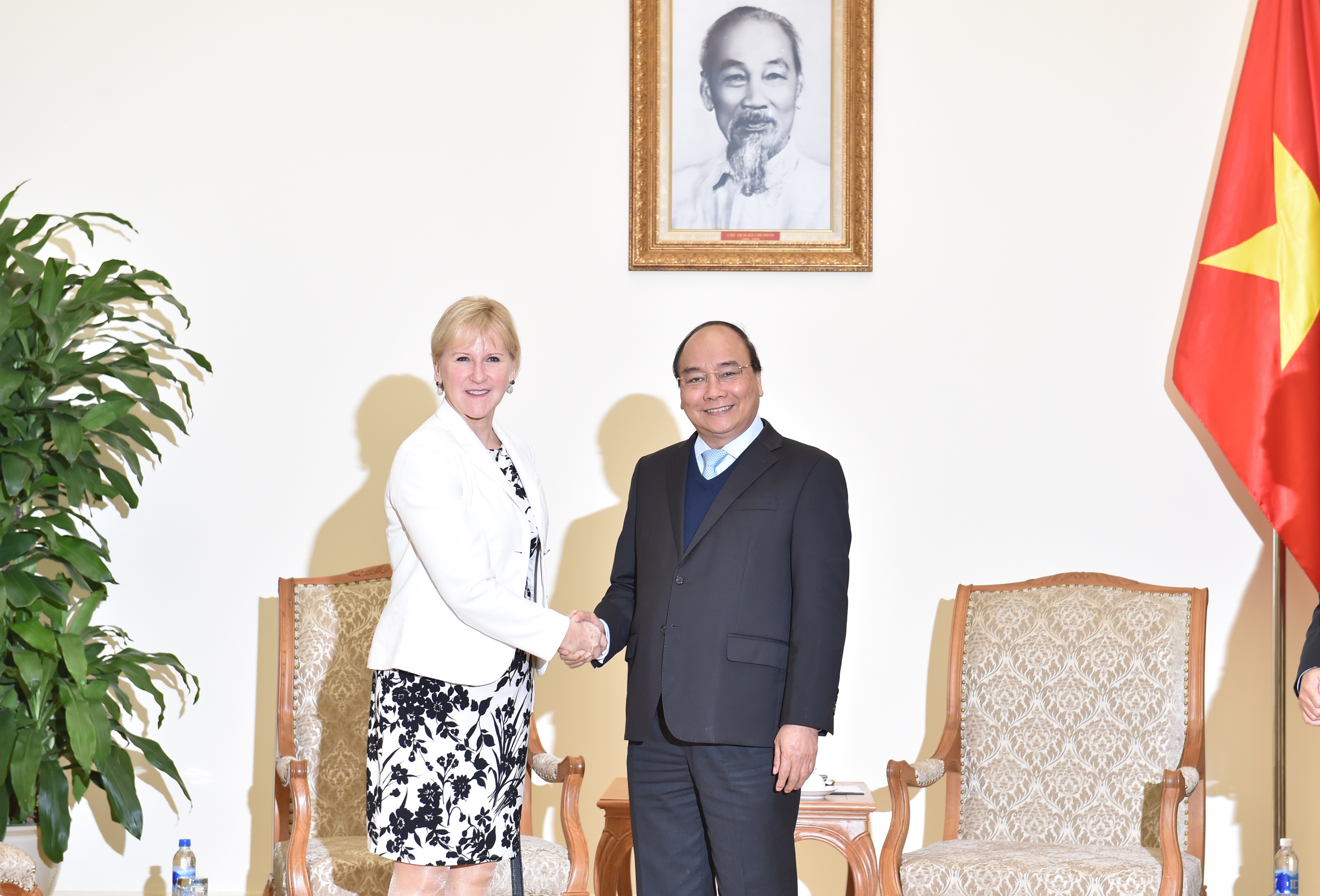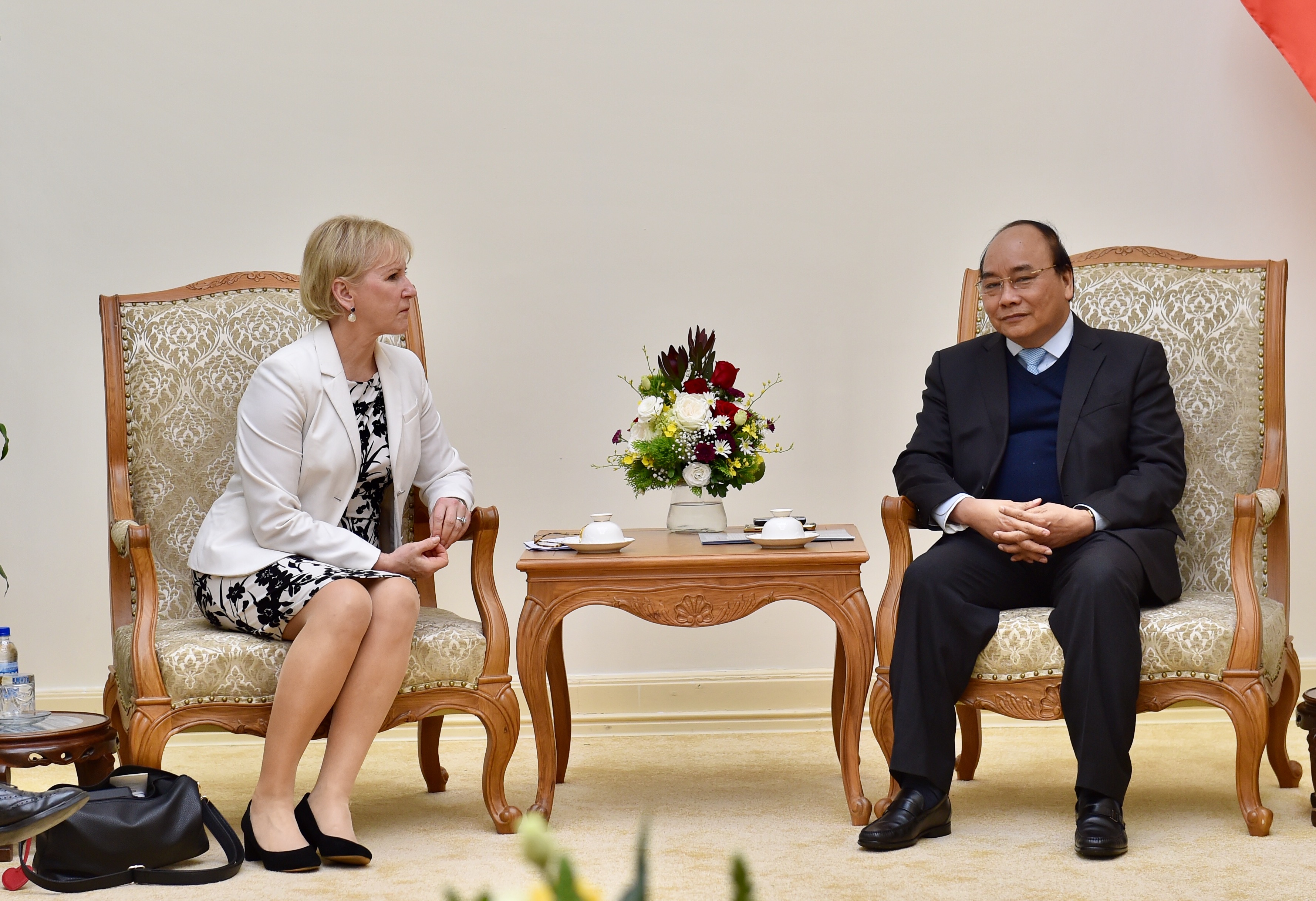 Cảm ơn Thủ tướng đã dành thời gian tiếp, Bộ trưởng Margot Wallstrom cho biết, khi còn trẻ, bà đã tham gia phong trào phản chiến, ủng hộ Việt Nam. Bà bày tỏ sự cảm kích khi nhiều người Việt Nam còn nhớ đến cố Thủ tướng Palme. “Chúng tôi mong muốn là người bạn tốt, đối tác tin cậy của Việt Nam”, Bộ trưởng Margot Wallstrom nói và hy vọng sẽ có bước phát triển mới trong quan hệ hai nước, nhất là về kinh tế, thương mại, đầu tư. Bà vui mừng cho biết, thời gian qua, thương mại hai chiều Việt Nam-Thụy Điển đã tăng mạnh và nhấn mạnh, “chúng tôi ủng hộ chính sách đa phương hóa, ủng hộ thương mại tự do toàn cầu” trong bối cảnh chính sách bảo hộ, chủ nghĩa dân tộc dâng cao tại nhiều nước.