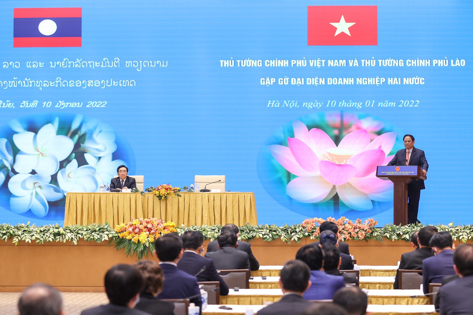 Chiều ngày 10/1, tại trụ sở Chính phủ, Thủ tướng Phạm Minh Chính và Thủ tướng Lào Phankham Viphavanh đã gặp gỡ đại diện doanh nghiệp hai nước.