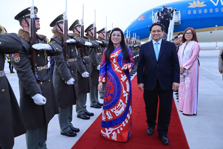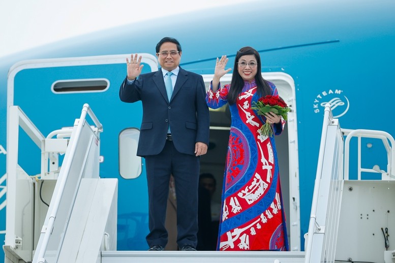 | Thủ tướng Phạm Minh Chính cùng Phu nhân Lê Thị Bích Trân tới sân bay Václav Havel, thủ đô Praha, bắt đầu thăm chính thức Cộng hòa Czech - Ảnh: VGP/Nhật Bắc |