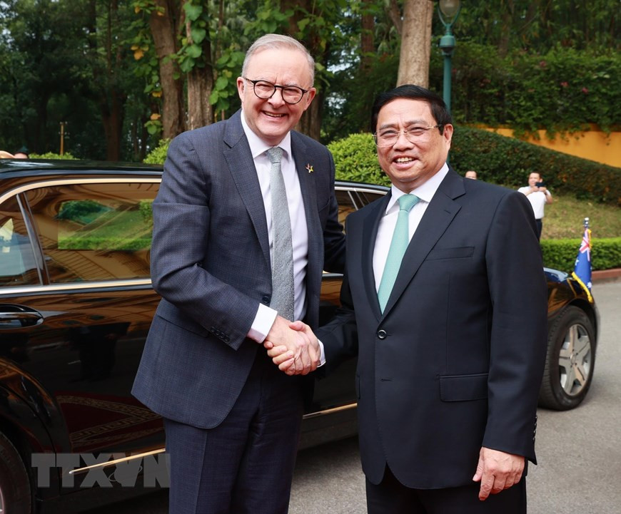 | Thủ tướng Phạm Minh Chính đón Thủ tướng Australia Anthony Albanese. Ảnh: TTXVN |