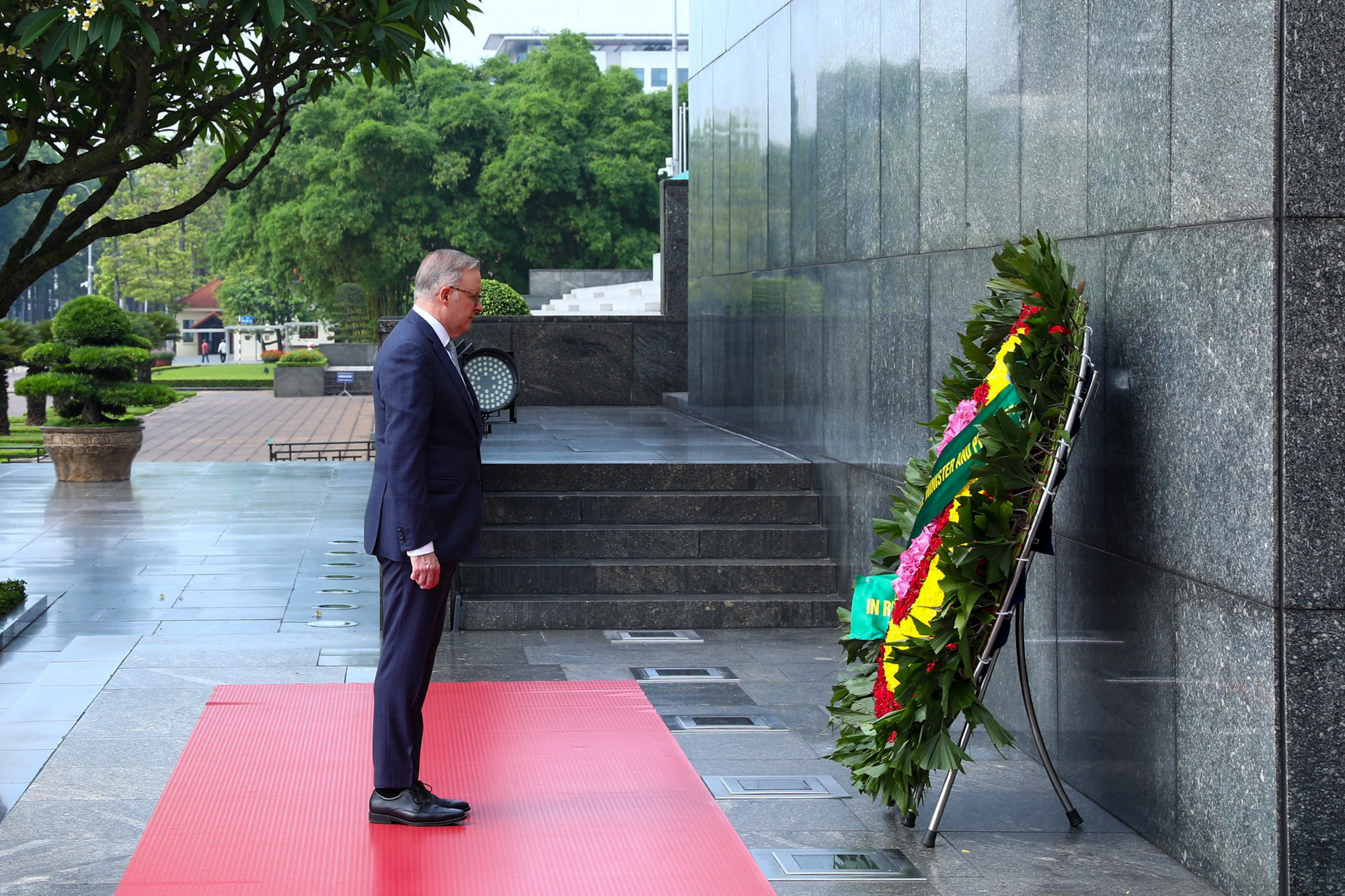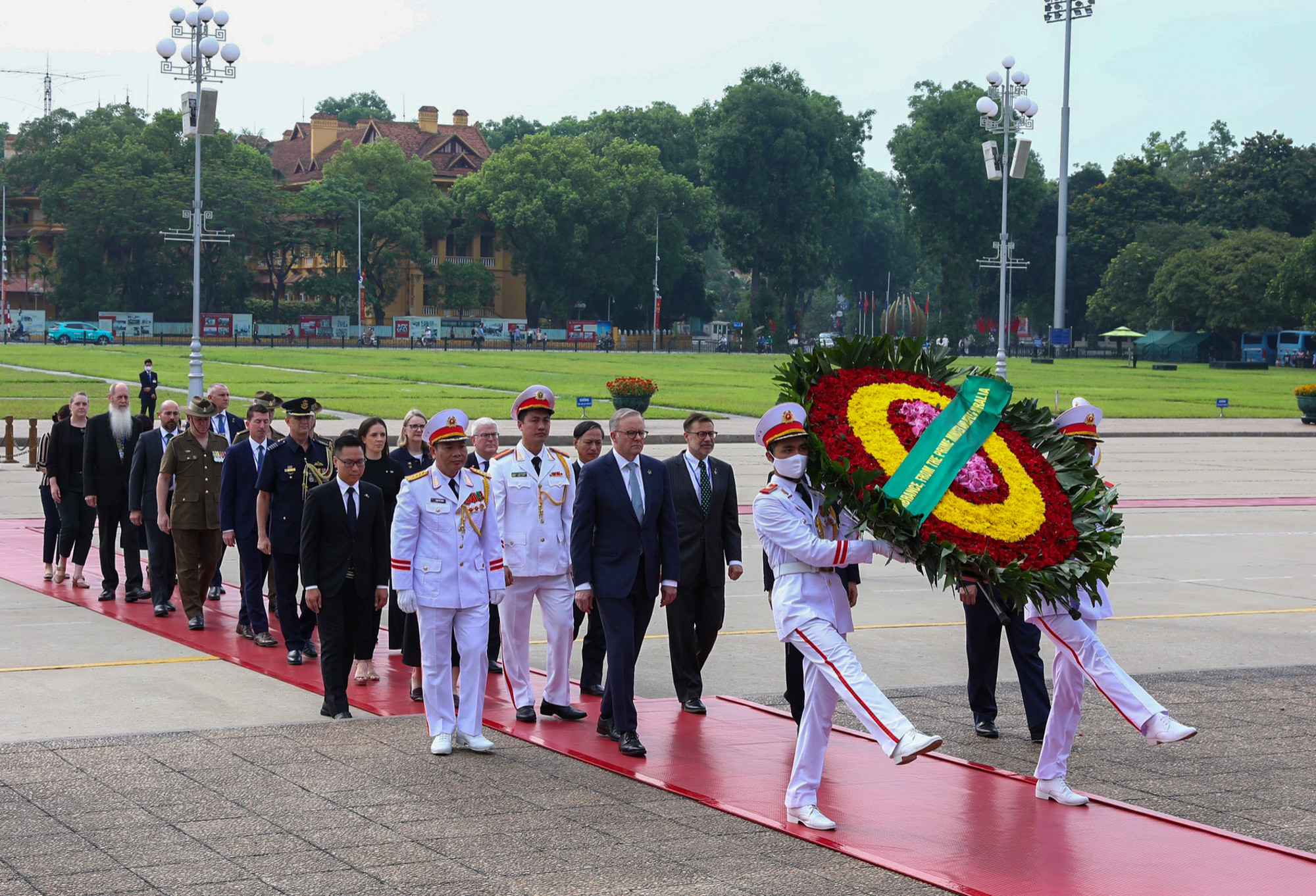 | Trước đó, sáng cùng ngày, Thủ tướng Anthony Albanese đã đặt vòng hoa và vào Lăng viếng Chủ tịch Hồ Chí Minh |