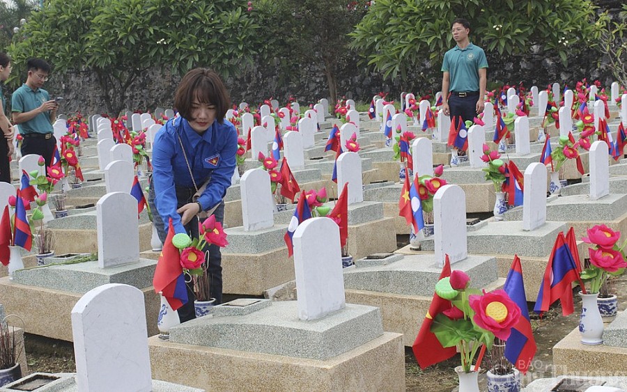 | Nghĩa trang quốc tế Việt - Lào là nơi tiếp nhận, chăm sóc gần 11 nghìn phần mộ liệt sỹ. Nhân dịp ngày thương binh liệt sỹ (27/7), bà con nhân dân từ khắp mọi miền Tổ quốc cũng đến viếng thăm, tri ân các anh hùng liệt sỹ an nghỉ tại nghĩa trang |