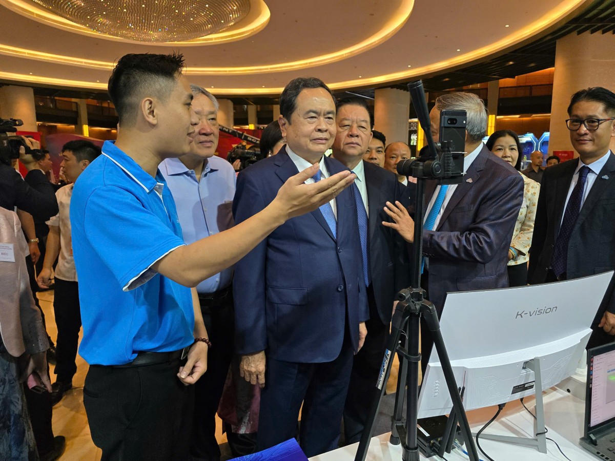 Tổng Bí thư Tô Lâm thăm quan các gian hàng tại triển lãm. Ảnh: VPQH