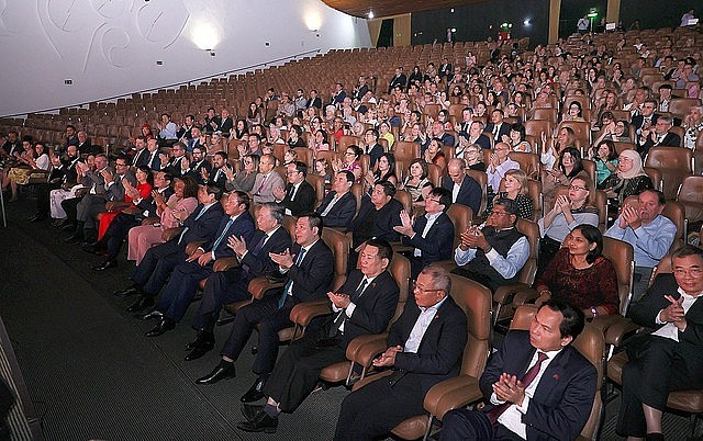Thủ tướng Phạm Minh Chính và Đoàn đại biểu cấp cao Việt Nam dự chương trình biểu diễn, giao lưu văn hóa nghệ thuật với chủ đề "Việt Nam - Những sắc màu" - Ảnh: VGP |