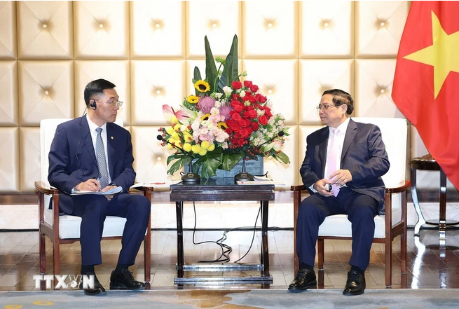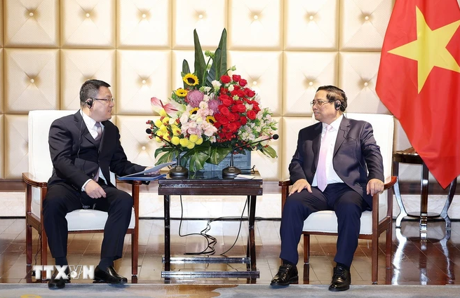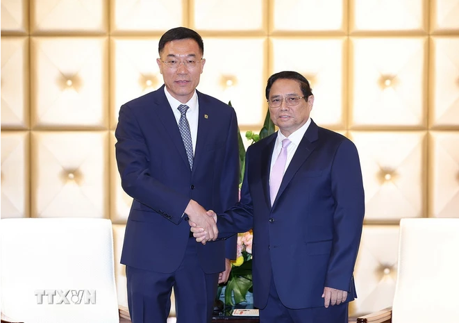 Thủ tướng Phạm Minh Chính tiếp lãnh đạo Tập đoàn xây dựng Điện lực Trung Quốc. (Ảnh: Dương Giang/TTXVN) |
