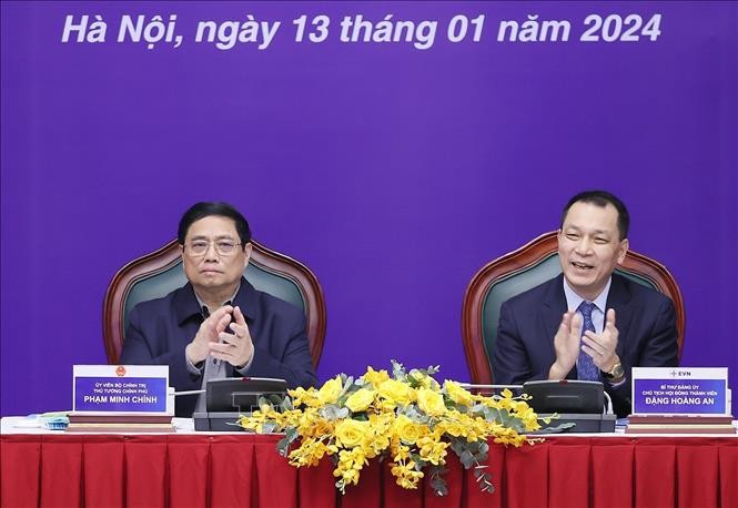 Chiều ngày 13/1, Thủ tướng Phạm Minh Chính đã làm việc với Tập đoàn Điện lực Việt Nam. Ảnh: Dương Giang/TTXVN |