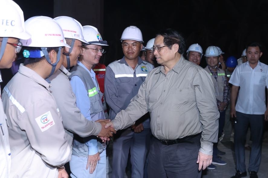 Trên công trường, Thủ tướng đánh giá cao nỗ lực của các cơ quan, địa phương liên quan, các nhà thầu, nhất là Trung Nam, ngày càng có nhiều kinh nghiệm và nâng cao năng lực; cảm ơn đội ngũ cán bộ, công nhân, người lao động trên công trường đã nỗ lực thi công với tinh thần "3 ca 4 kíp", "ăn tranh thủ, ngủ khẩn trương", "chỉ bàn làm không bàn lùi", làm xuyên lễ xuyên Tết.