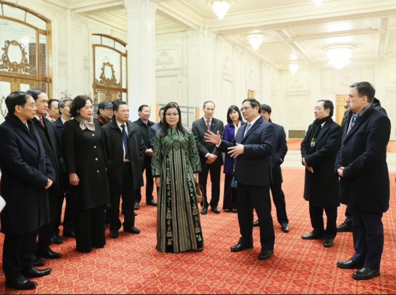 Trước đó, chiều 20/1/2024 (giờ địa phương), Thủ tướng Phạm Minh Chính và Phu nhân đến tham quan Nhà Quốc hội Romania ở thủ đô Bucharest.