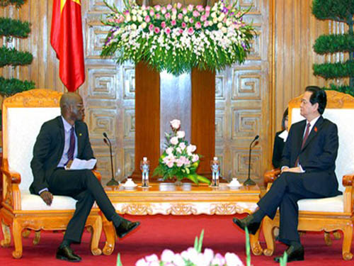 CôngThương - Đánh giá cao kết quả hội đàm giữa Phó Thủ tướng, Bộ trưởng Ngoại giao Phạm Bình Minh với Bộ trưởng Patrice Nisbett, Thủ tướng Nguyễn Tấn Dũng cho rằng chuyến thăm và làm việc tại Việt Nam của Bộ trưởng Patrice Nisbett sẽ mở ra trang sử mới trong quan hệ giữa Việt Nam và Saint Kitts and Nevis.