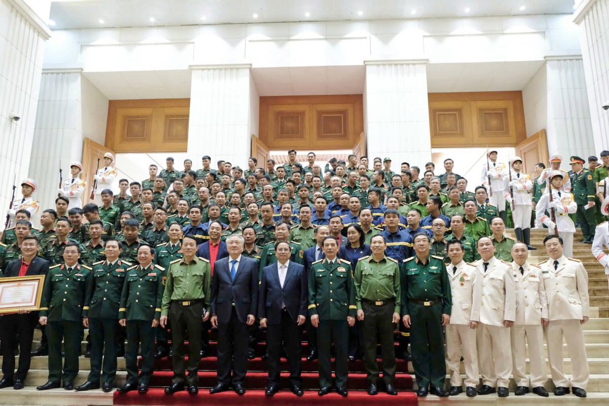 | Tại lễ tuyên dương, thay mặt lãnh đạo Đảng, Nhà nước, Thủ tướng Chính phủ Phạm Minh Chính đã trao Huân chương Bảo vệ Tổ quốc hạng Ba tặng 2 tập thể: Cục Cứu hộ - Cứu nạn, Bộ Quốc phòng và Cục Cảnh sát phòng cháy chữa cháy và cứu nạn, cứu hộ, Bộ Công an và 4 cá nhân. - Ảnh: Thế Duy |