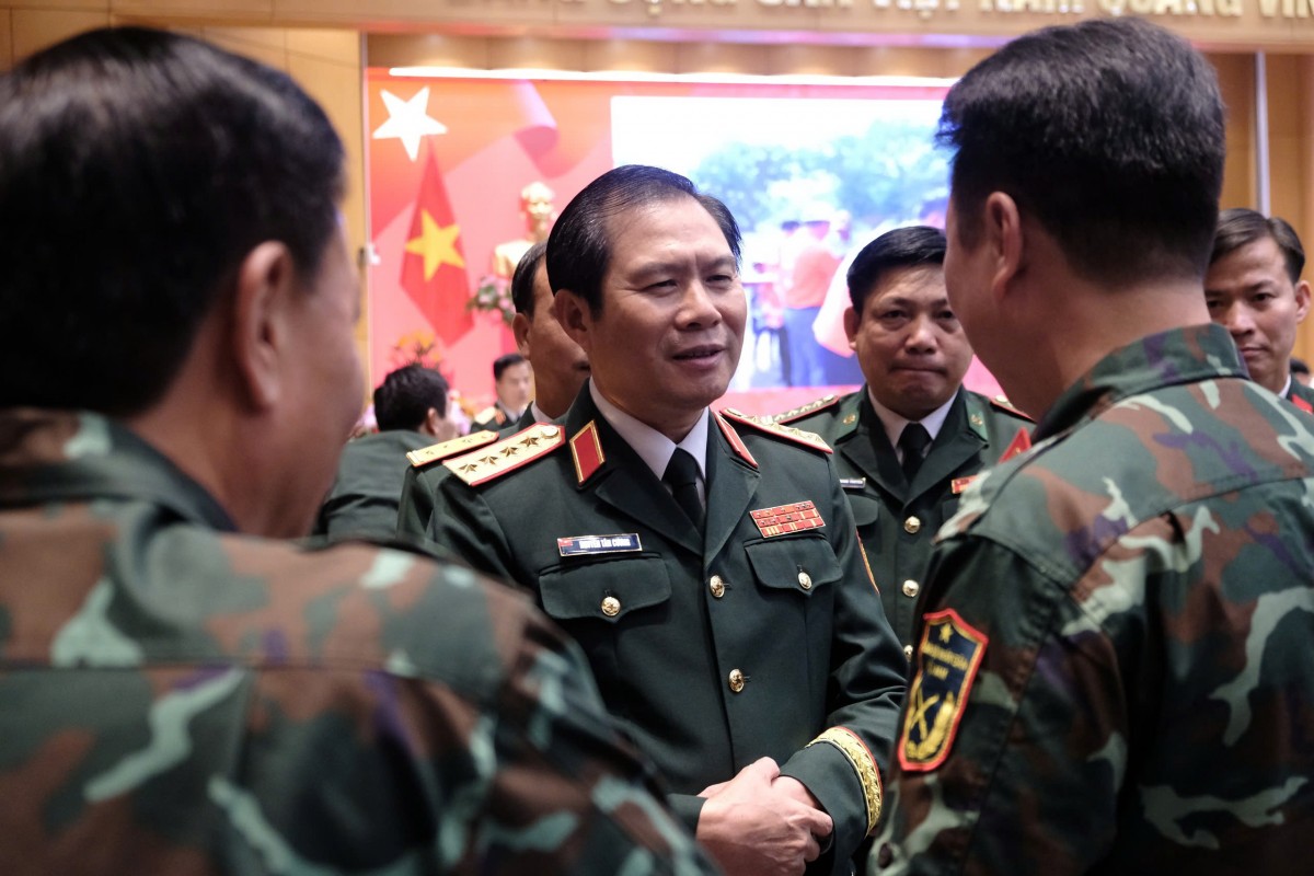 | Đại tướng Nguyễn Tân Cương, Ủy viên Trung ương Đảng, Ủy viên Thường vụ Quân ủy Trung ương, Tổng tham mưu trưởng Quân đội nhân dân Việt Nam, Thứ trưởng Bộ Quốc phòng trò chuyện, thăm hỏi, động viên tinh thần các cán bộ chiến sĩ. - Ảnh: Thế Duy |
