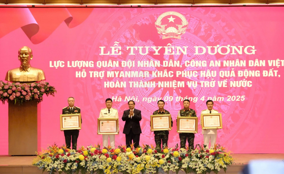 Chiều 9/4, tại trụ sở Văn phòng Chính phủ, Thủ tướng Chính phủ Phạm Minh Chính đã chủ trì Lễ tuyên dương Đoàn công tác của Quân đội nhân dân Việt Nam (QĐNDVN) và Công an nhân dân Việt Nam tham gia hỗ trợ Myanmar khắc phục hậu quả thảm họa động đất. Sự kiện là dịp khẳng định vai trò, trách nhiệm và năng lực của Việt Nam trong công tác cứu trợ nhân đạo quốc tế, đồng thời tri ân những nỗ lực phi thường của lực lượng cứu hộ Việt Nam trên đất bạn.