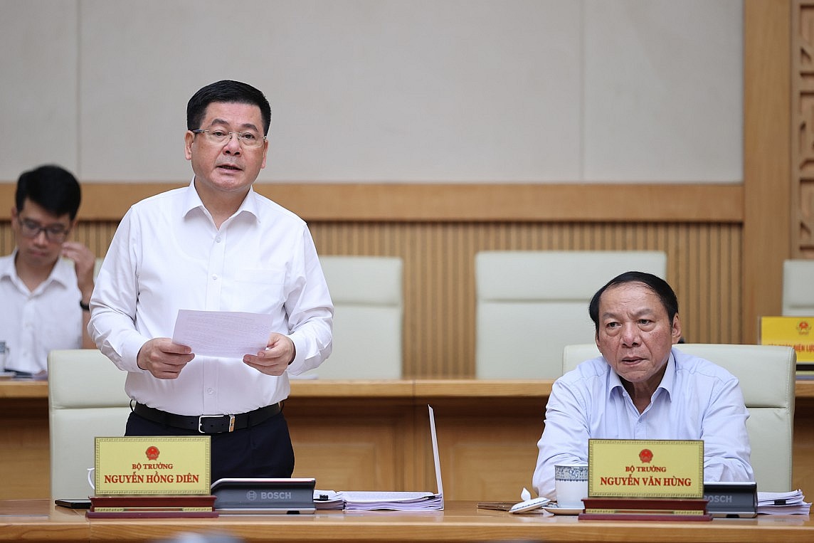Bộ trưởng Bộ Công Thương Nguyễn Hồng Diên phát biểu tại phiên họp. Ảnh: VGP |