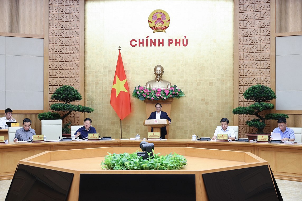 Thủ tướng Phạm Minh Chính chủ trì Phiên họp Chính phủ chuyên đề về xây dựng pháp luật tháng 7/2024. Ảnh: VGP |
