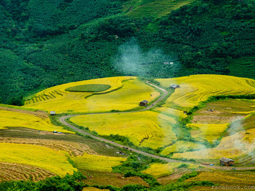 CôngThương - Những con đường uốn lượn giữa thảm lúa vàng của Khu Chu Lìn. Mùa lúa ở Y Tý thường chín sớm hơn các khu vực vùng cao khác, đến giữa tháng 9 là bà con đã thu hoạch xong.