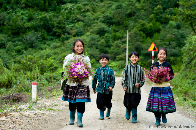Bạn đôi khi bắt gặp nụ cười trong trẻo của những cô bé, cậu bé chơi đùa với bó hoa rừng trên tay.