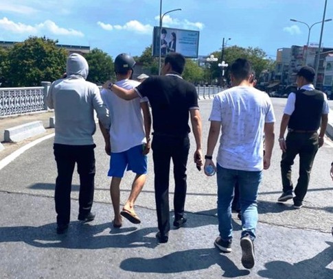| Đối tượng Ngô Văn Quốc (thứ 2 từ trái qua) bị lực lượng Công an Thừa Thiên Huế bắt giữ |