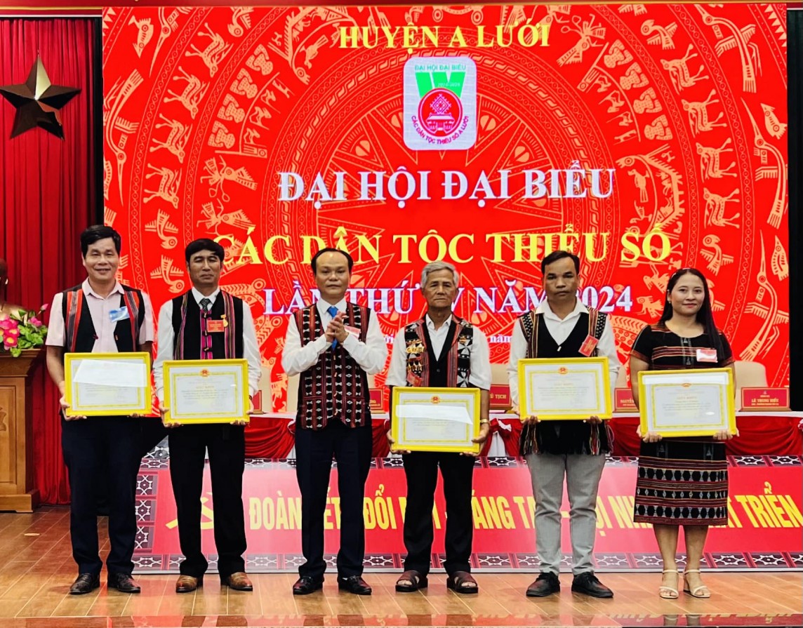 | Khen thưởng các tập thể, cá nhân có thành tích xuất sắc trong phong trào thi đua yêu nước (Ảnh: HĐND A Lưới) |