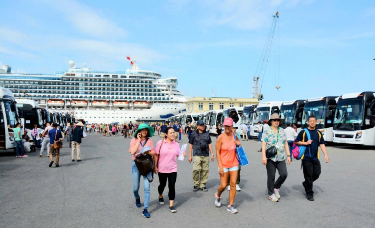 | Tàu du lịch chở theo hàng ngàn du khách cập cảng Chân Mây và thăm quan các điểm du lịch tại Cố Đô Huế (Ảnh: Sở Du lịch TTH) |