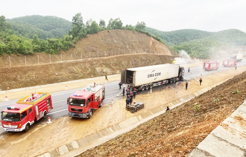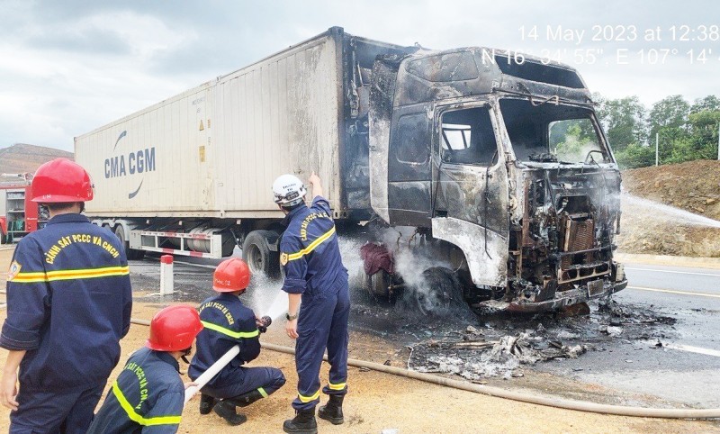 Chiều 14/5, lãnh đạo Đội 4, Phòng 8 Cục Cảnh sát giao thông cho biết, trên tuyến cao tốc đoạn Cam Lộ - La Sơn vừa xảy ra sự việc xe container bốc cháy. Theo đó, vụ cháy xảy ra vào lúc 11h43 trưa 14/5 tại km 37+650 cao tốc đoạn Cam Lộ - La Sơn đoạn qua huyện Phong Điền, tỉnh Thừa Thiên Huế.