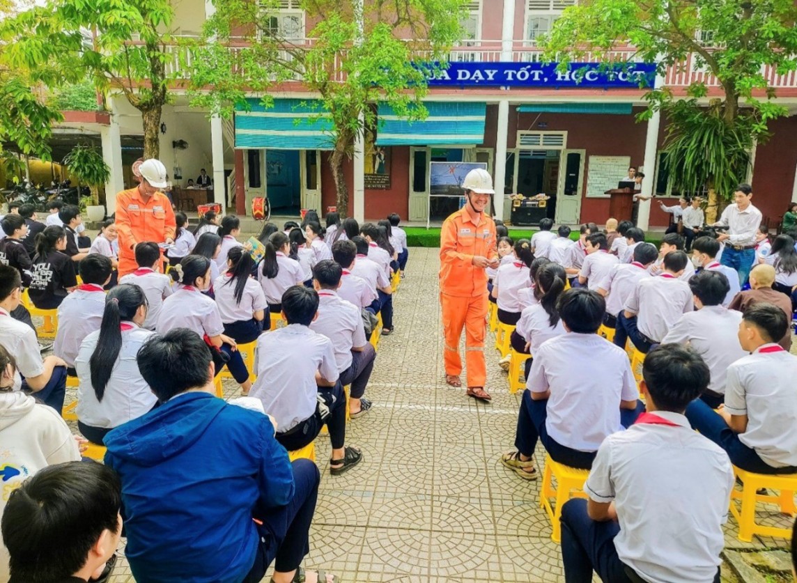 | Tuyên truyền tiết kiệm điện trong trường học tại TP. Huế (Ảnh: DH) |
