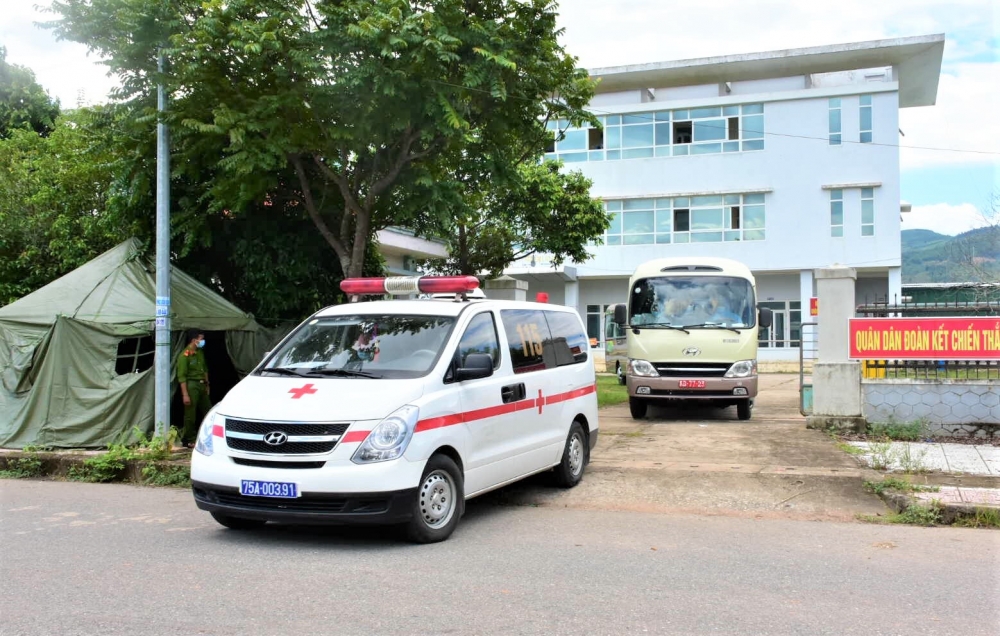 | Lực lượng chức năng Thừa Thiên Huế đón các công dân tại khu cách ly ở huyện Hướng Hóa |
