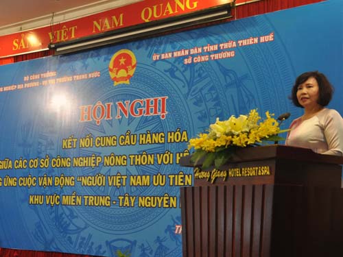 Phát biểu tại hội nghị. bà Hồ Thị Kim Thoa – Thứ trưởng Bộ Công Thương nhấn mạnh: Hiện nay các dòng sản phẩm công nghiệp nông thôn chưa tiếp cận nhiều đến các trung tâm thương mại và để tiếp cận vào hệ thống kênh phân phối này không khó nhưng đòi hỏi các ban ngành liên quan cần liên kết chặt chẽ, tạo tiếng nói chung để sản phẩm công nghiệp nông thôn không chỉ cung cấp cho các chợ truyền thống mà còn thông qua các trung tâm thương mại đưa sản phẩm đến tận tay người tiêu dùng.