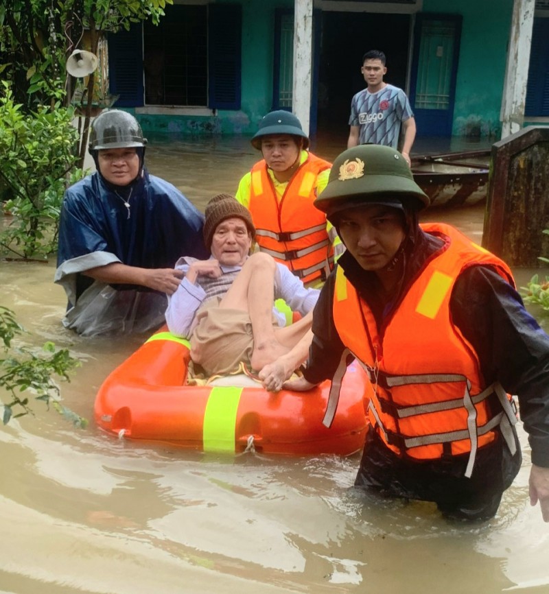 Công an Thừa Thiên Huế hỗ trợ sơ tán, di chuyển những người già, neo đơn đến nơi an toàn