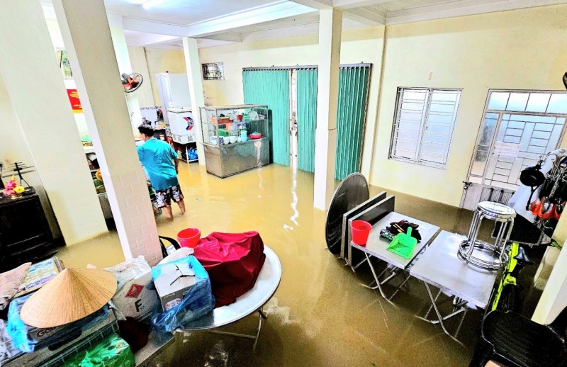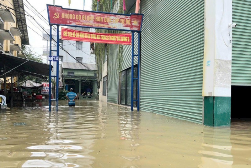 Nước lũ bao vây từ đường chính đến các ngõ hẽm, hoạt động đi lại, sinh hoạt của người dân bị hạn chế