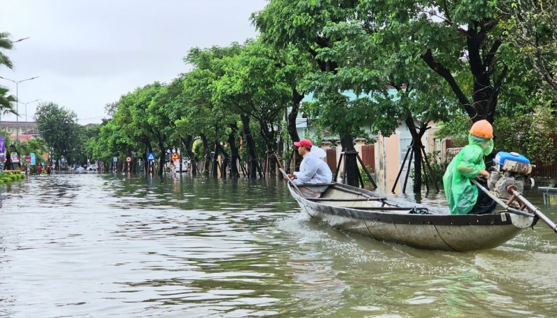 Mưa đặc biệt lớn, nước thượng nguồn đổ về nhiều khiến mực nước các sông Thừa Thiên Huế dâng cao, nhiều vùng bị ngập chìm trong biển nước.