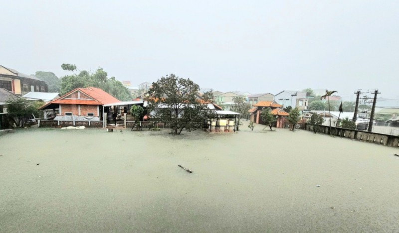 Khu vực ven thành phố Huế cũng bị nước lũ bao vậy, nhiều nhà dân ngập sâu
