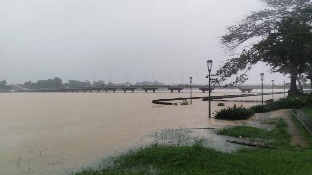 | Theo Ban Chỉ huy Phòng chống thiên tai và tìm kiếm cứu nạn Thừa Thiên Huế, mực nước sông Hương đang ở mức trên báo động 2 và có khả năng tăng lên và vượt báo động 3 trong đêm nay. Chiều ngày 14/10 nước lũ dâng lên ngập gần hết Cầu đi bộ gỗ lim trên sông Hương |