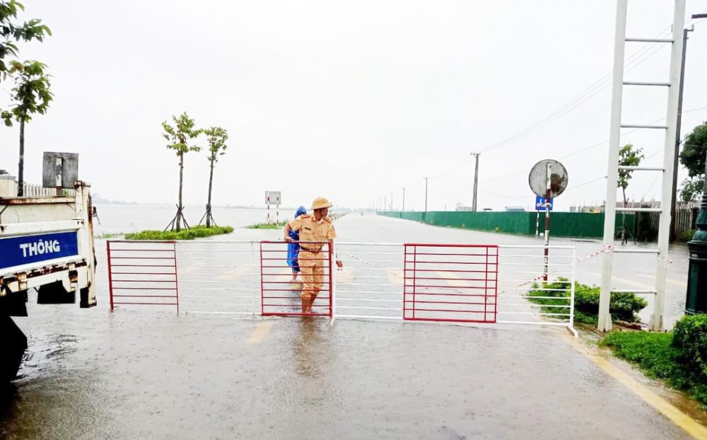 | Các tuyến tỉnh lộ tại các huyện Quảng Điền, Phong Điền bị nước lũ bao vây, giao thông chia cắt. Nhằm tránh những tai nạn, rủi ro mưa do mưa lũ, lực lượng chức năng Thừa Thiên Huế cắt cử người cảnh giới, cảnh báo nguy hiểm. |