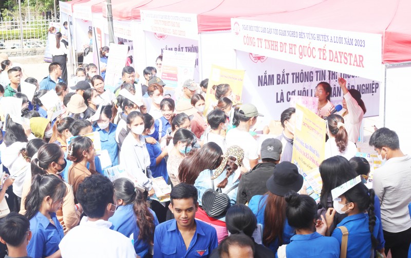 Ngày hội việc làm gắn với giảm nghèo bền vững năm 2023 tổ chức tại huyện miền núi A Lưới đã thu hút đông đảo người lao động, đoàn viên, thanh niên, học sinh, sinh viên nói chung và bà con dân tộc thiểu số trên địa bàn huyện nói riêng. Ngày hội đã thu hút 16 đơn vị, doanh nghiệp tham gia, với nhu cầu tuyển dụng 4.117 vị trí việc làm; trong đó, việc làm trong nước là 2.147 vị trí; việc làm ngoài nước 1.775 vị trí. Các ngành nghề tuyển dụng cũng rất đa dạng, phù hợp với trình độ lao động khác nhau, như may công nghiệp, chế biến món ăn, y học cổ truyền, kinh doanh, kế toán, kỹ sư, cơ khí, điện lạnh, điện tử…