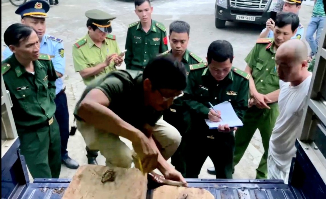 | Phối hợp các lực lượng bắt giữ xe chở gỗ lậu tại phường Thuận An, TP. Huế (Ảnh: CT) |