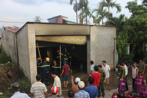 Sau gần 2 tiếng, đám cháy cơ bản được khống chế. Tại hiện trường, kho chứa gas là một ngôi nhà cấp bốn bị hư hỏng khá nhiều sau vụ cháy nổ, hàng trăm bình gas lớn nhỏ lăn lóc bên trong, tất cả đều bị nhuốm đen. Nhiều vật dụng trong kho do áp lực của vụ nổ đã bắn ra ngoài với khoảng cách xa, mái tôn nhà kho rách toạc.