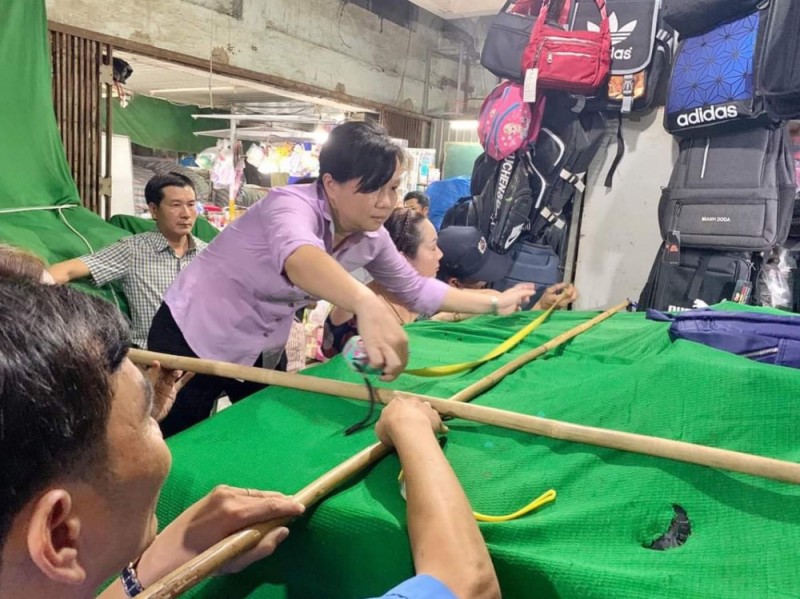 | Bà Hoàng Thị Như Thanh - Trưởng ban Ban Quản lý Chợ Đông Ba trong lần đo vẽ, sắp xếp lại không gian buôn bán trong chợ |