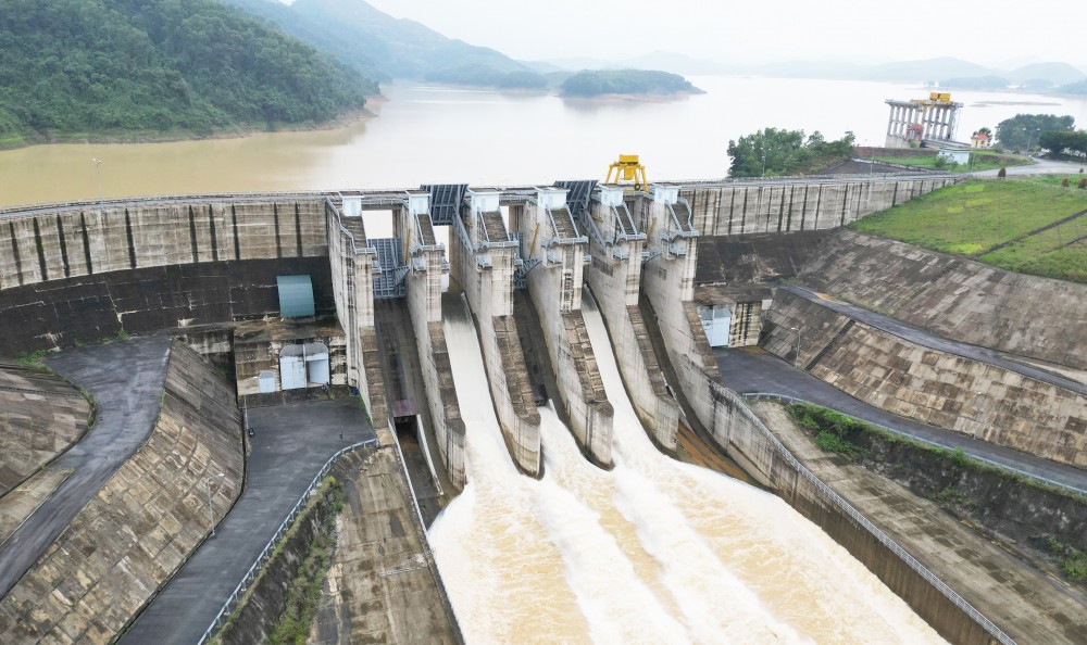 | Hồ Tả Trạch tiến hành điều tiết nước về hạ du để chủ động đón lũ, đảm bảo an toàn hồ đập |
